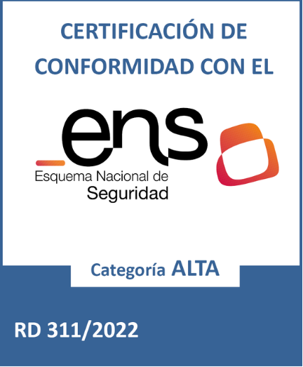 Estamos Certificados ENS Alto, ISO 27001.